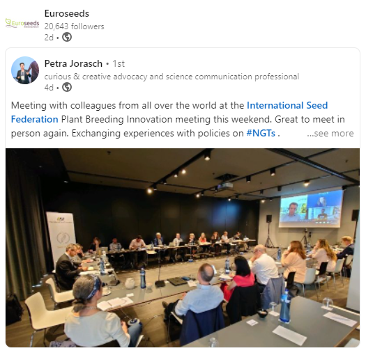 During the expert group meetings and the main event, the Euroseeds Secretariat provided an EU perspective to the technical sessions and actively engaged with several stakeholders at EU and international level. The Secretariat took the opportunity to exchange knowledge and share views on the potential scenarios of the most important legislative discussions, ongoing and upcoming, on the plant reproductive material or ‘PRM’, the new genomic techniques (the public consultation is still ongoing), and the sustainable use of pesticides.