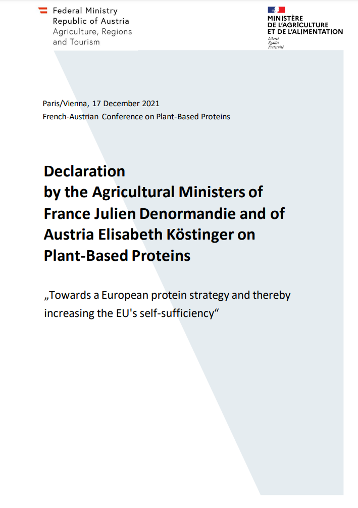 Declaration by the Agricultural Ministers of France Julien Denormandie and of Austria Elisabeth Köstinger on Plant-Based Proteins