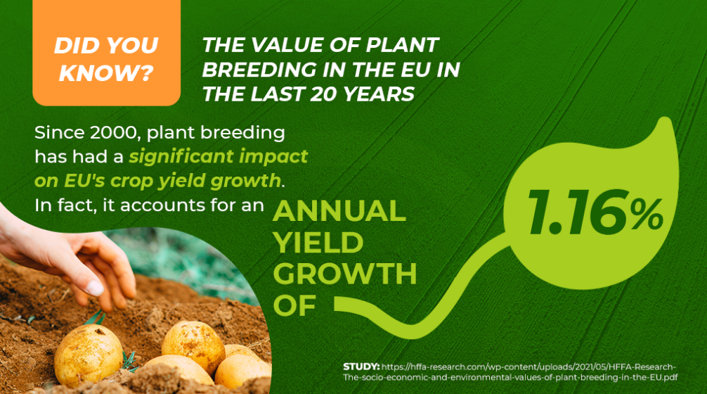 The WUR’s study echoes the findings of the HFFA Research GmbH study that demonstrated that plant breeding in the European Union drives socio-economic and environmental sustainability and can partially compensate production losses potentially resulting from the implementation of the EU Farm to Fork and Biodiversity strategies.